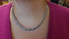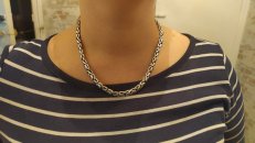 Full-fledged silver chain around the neck. This weaving is quite time consuming to execute, and most jewelers do not have a sufficient level of manufacturing skills to achieve high quality jewelry, let alone just make it. At the moment, the quality of our work from this weaving is significantly superior to most other manufacturers.